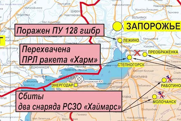 Кроме того, в районе Степногорска Запорожской области перехвачена американская противорадиолокационная ракета HARM.