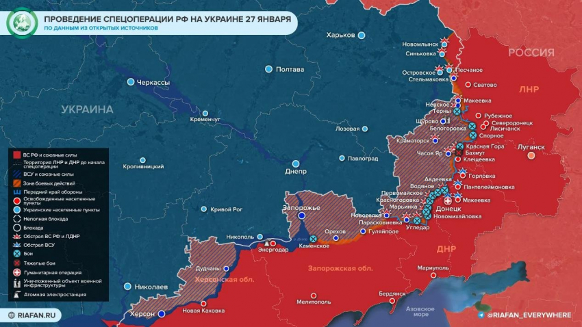 Карта боевых действий на Украине 28 января 2023 года: свежие данные на субботу