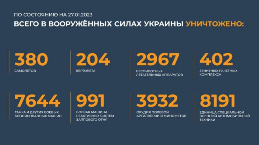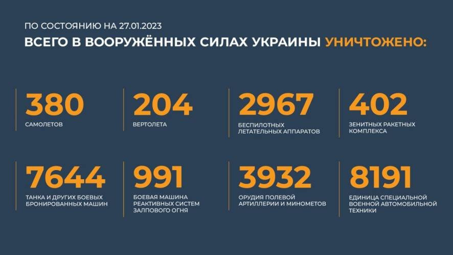 Демилитаризация Украины: последние данные на сегодня, 28.01.2023