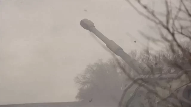 Корректировка огня самоходных пушек ведется с помощью беспилотника, чтобы повысить точность стрельбы, сообщает РЕН ТВ.