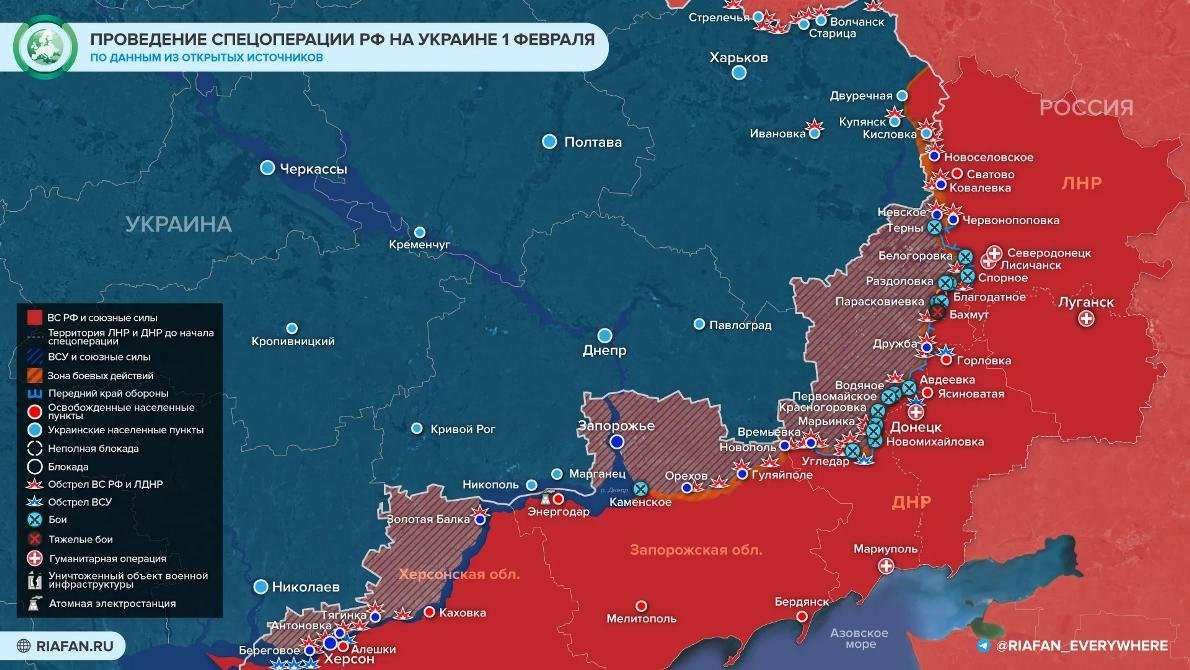 Карта боевых действий на Украине: данные на сегодня, 1 февраля 2023