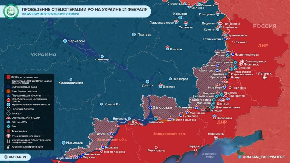 Военная спецоперация России на Украине. Самые свежие данные на 22 февраля, последние новости