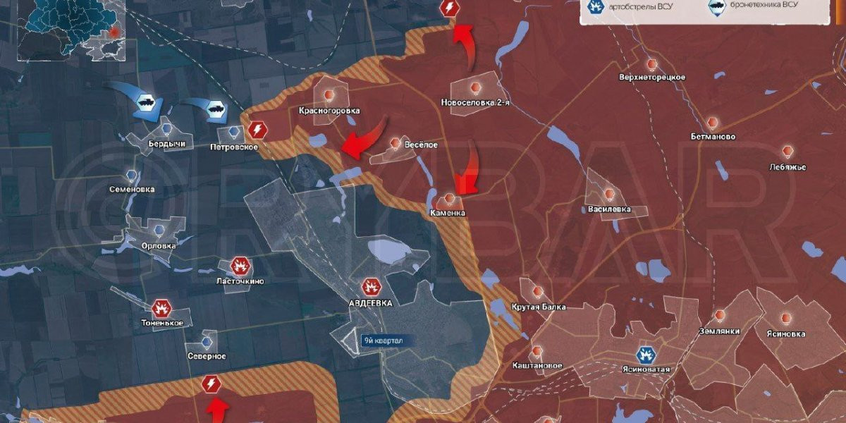 - Севернее Авдеевки российские войска продолжают вести позиционные бои в лесном массиве возле Новобахмутовки.