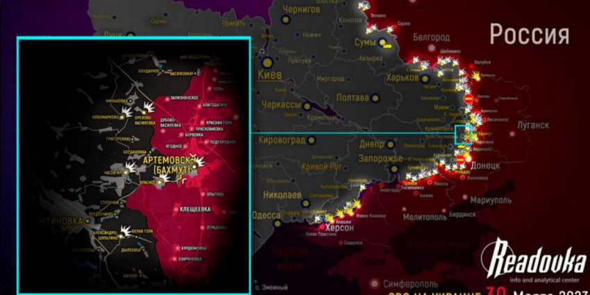 Свежая карта боевых действий на Украине сегодня, 31 марта 2023: последние сводки СВО.