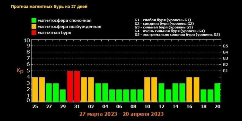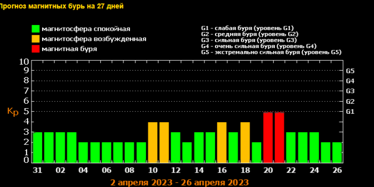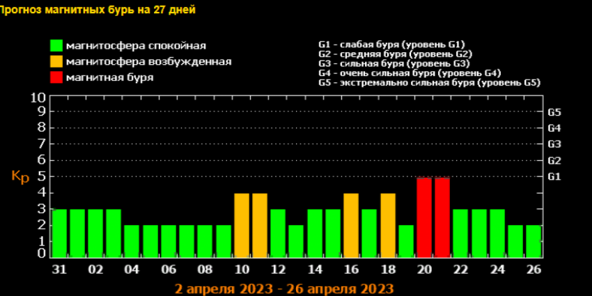 - Прогноз магнитных бурь на апрель 2023 года: сколько будет неблагоприятных дней