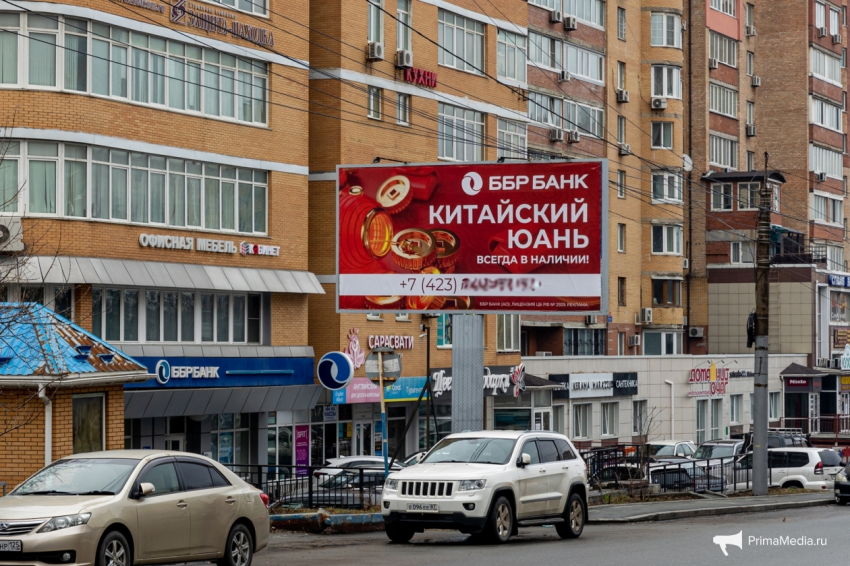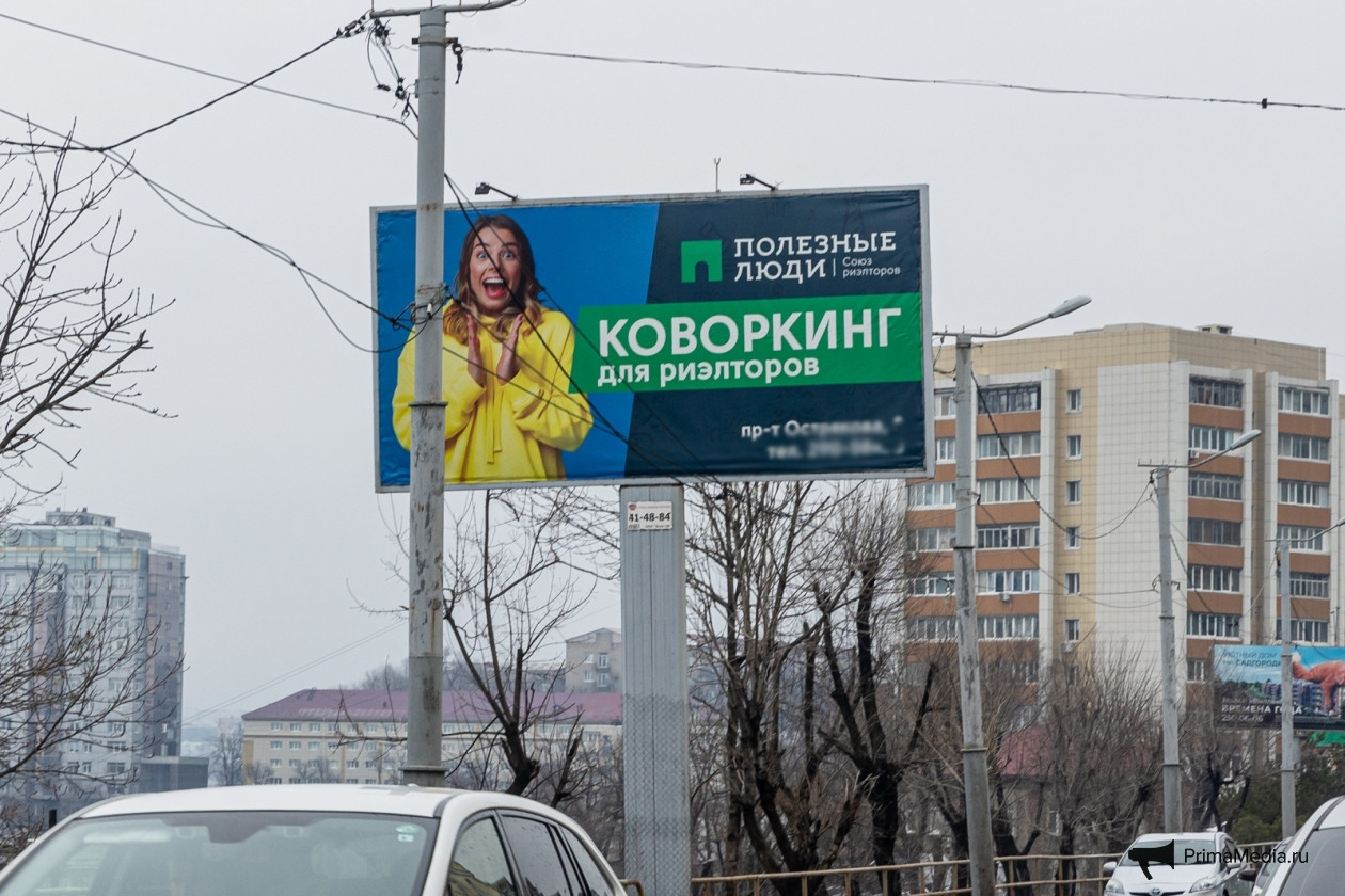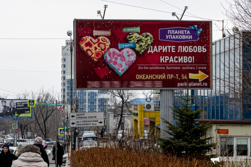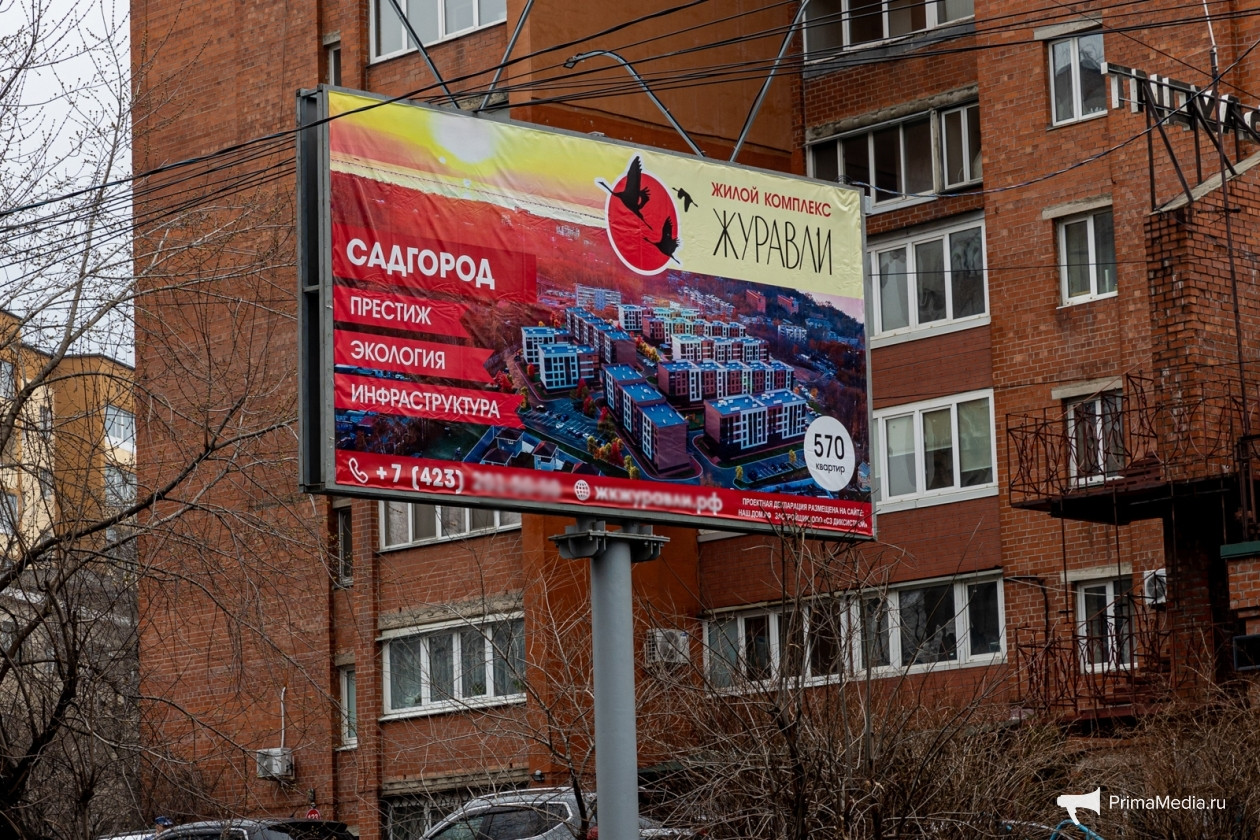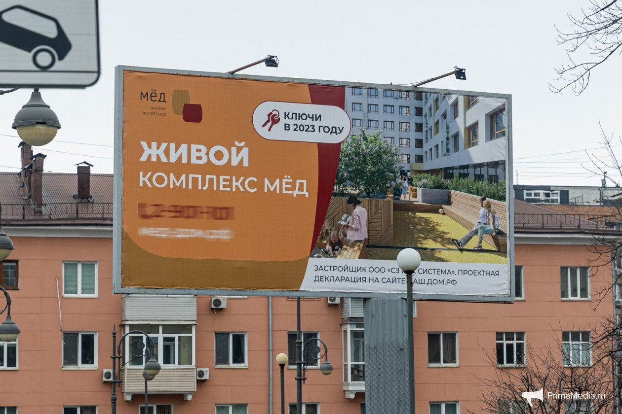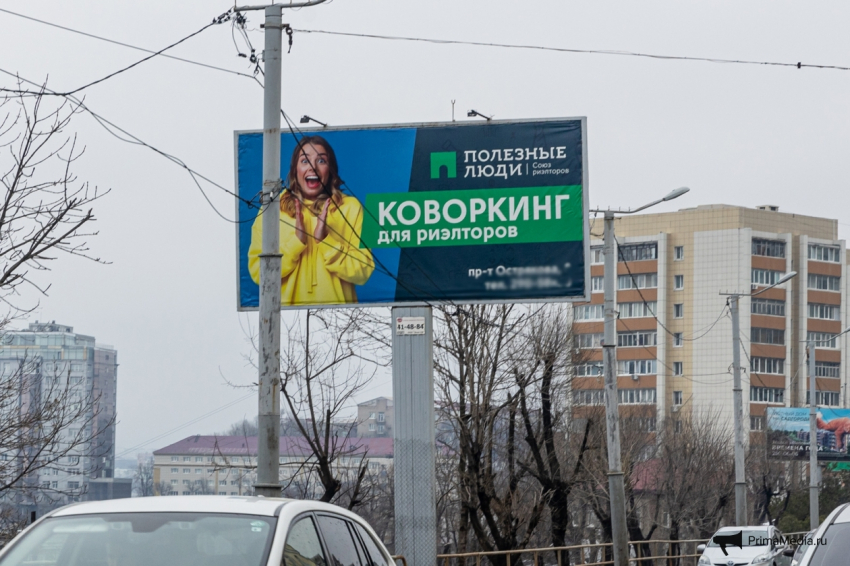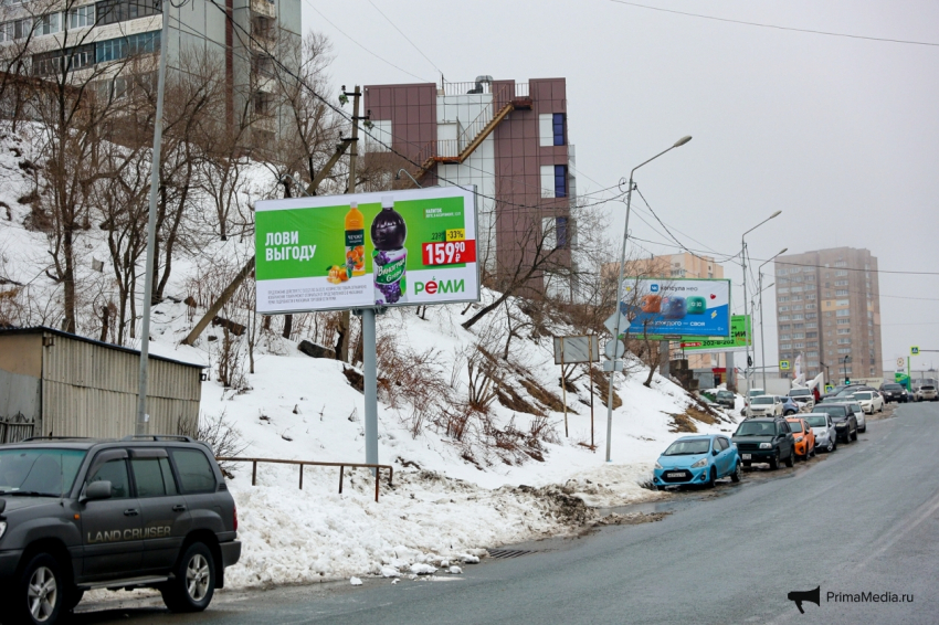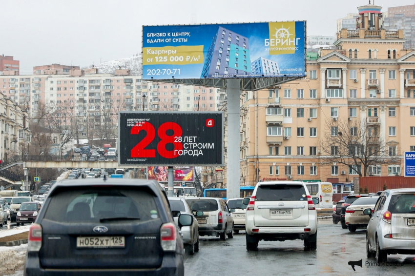Наружная реклама во Владивостоке: девелоперы, торговые сети, банки. Фото: Илья Аверьянов, ИА PrimaMedia