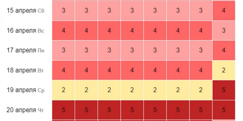 - 20 апреля — пик активности с 9 до 11, средняя.