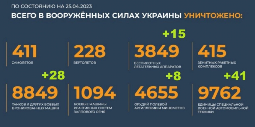 Брифинг Министерства обороны Российской Федерации о ходе проведения специальной военной операции на территории Украины по состоянию на 27 апреля 2023 года