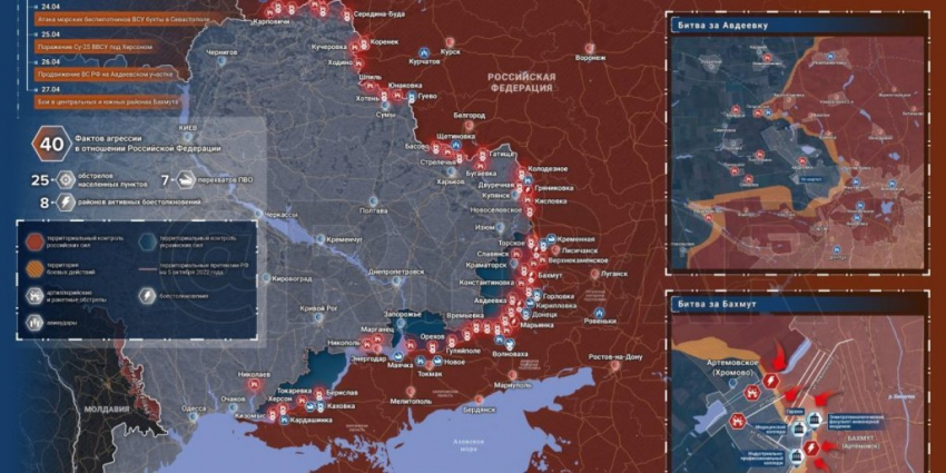 - Карта боевых действий на Украине на сегодня, 28 апреля 2023 года