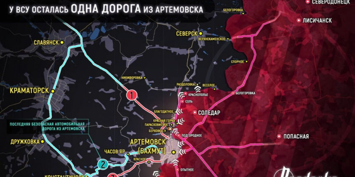 Основная стратегическая цель – оперативное окружение Артемовска, где находится около 20 бригад ВСУ и иностранных подразделений. Два из трех основных путей снабжения ВСУ уже под контролем РФ.