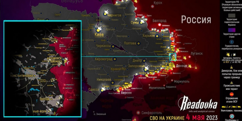 - Свежая карта боевых действий на Украине на сегодня 07.05.2023. Спецоперация РФ на Украине, день 438-й