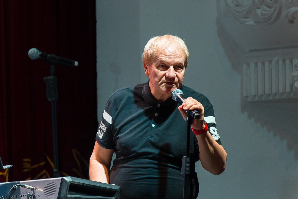 — Это будет не концерт, это будет занятие. Мы работали в течение двух дней, и сейчас покажем вам результаты лабораторной работы в сольных номерах, подготовленных артистами Театра молодежи. Во второй части мы хотим познакомить вас со студентами, которые были отобраны в прошлом году на мой курс в институте. Сейчас они первокурсники, все очень молодые, им по 18-19 лет, и они готовятся к сессии, — предварил происходящее на сцене Благодёр.
