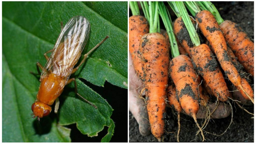Морковная муха способна уничтожить до 60-70% урожая, если с ней не бороться. Корнеплод портится в процессе роста и даже после уборки урожая. В течение одного сезона размножаются два поколения насекомых. Первое – когда цветут яблоки, второе – в июне-июле. Самка откладывает яйца близ посевов, и личинки из них перемещаются внутрь моркови, питаются ею.