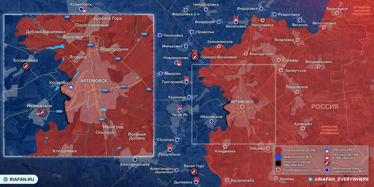 - Карта боевых действий на Украине сегодня, обстановка к утру 2 июня 2023 года от Mash. Бои за Артёмовск
