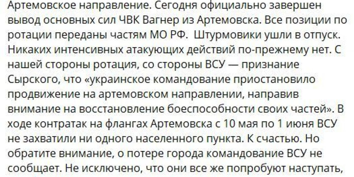 Фронтовая сводка Семена Пегова на 01.06.23 г. — Варгонзо (WarGonzo последние новости):