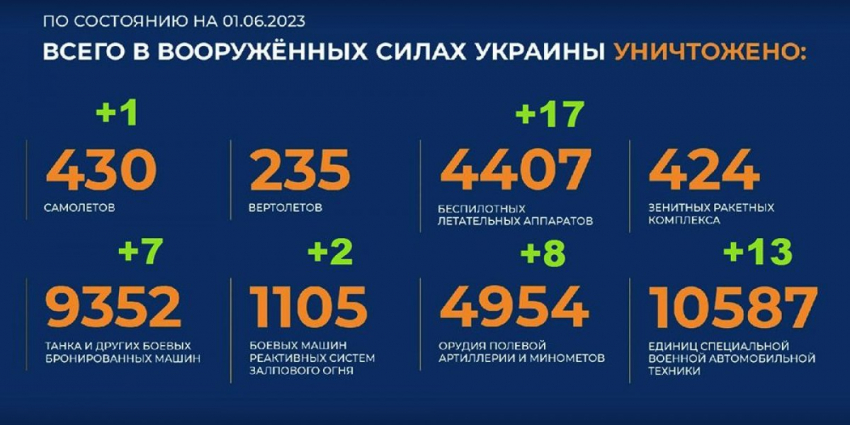 - Актуальный брифинг Министерства обороны РФ о ходе проведения специальной военной операции на территории Украины по состоянию на 1 июня 2023 года. Сводка боевых действий на Украине.