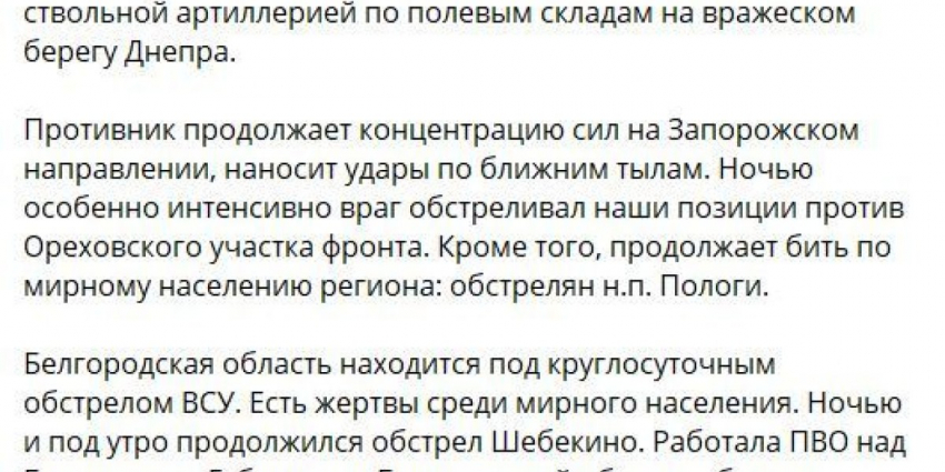 - Об ударах по Шебекино и утренней попытке прорыва ВСУ