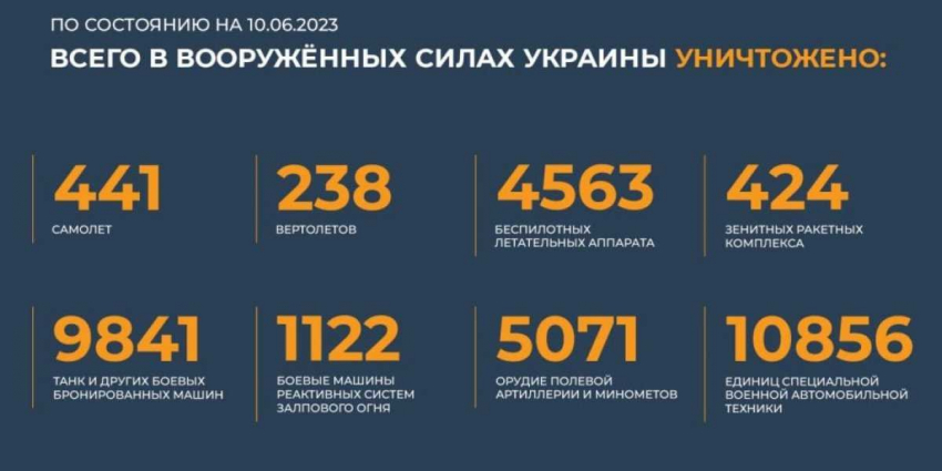 - Потери армии Украины на 11 июня 2023. Брифинг Минобороны — итоги на сегодня