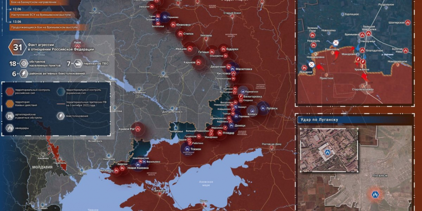 - Карта боевых действий на Украине, к утру 15 июня 2023г., от РИА Новости. Карта специальной военной операции.