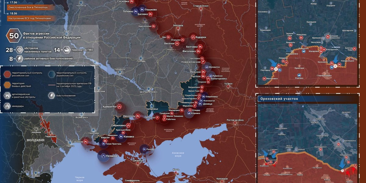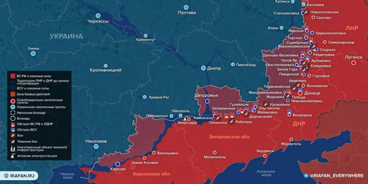 - Карта боевых действий на Украине, к утру 20 июня 2023г., от РИА Новости. Карта специальной военной операции.