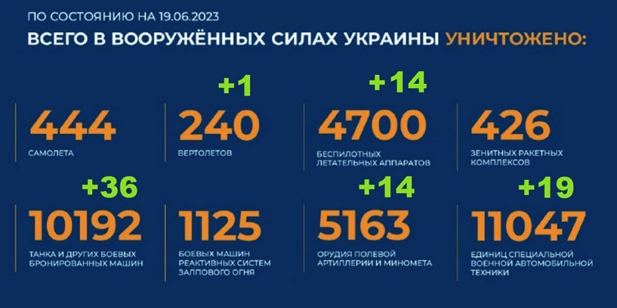 - Актуальный брифинг Министерства обороны РФ о ходе проведения специальной военной операции на территории Украины по состоянию на 19 июня 2023 года. Сводка боевых действий на Украине.