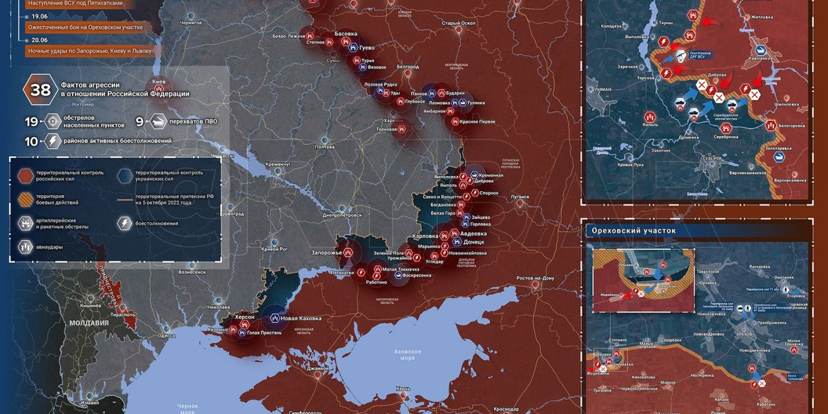 - Карта боевых действий на Украине, 22 июня 2023г., от РИА Новости. Карта специальной военной операции.