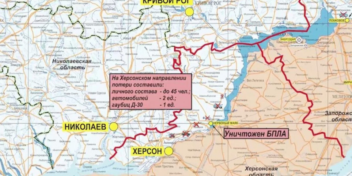 - Начальник пресс-центра российской группировки «Юг» Вадим Астафьев рассказал, что в ходе контрбатарейной борьбы артиллерийскими подразделениями группировки уничтожены самоходная артиллерийская установка Krab в районе Ивановки, американская радиолокационная станция контрбатарейной борьбы АN/TPQ в районе Меньковки, 152-мм буксируемая гаубица 2А65 «Мста» в районе населённого пункта Острое и два миномёта на позициях в районе Марьинки и Красногоровки.