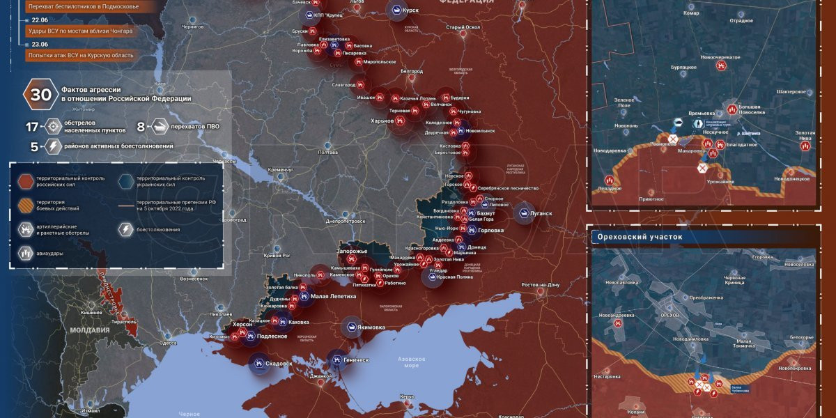 Карта военной операции на Украине на сегодня, 24 июня 2023 года