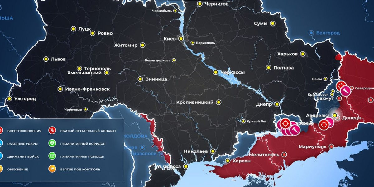 - Карта боевых действий на Украине сегодня, обстановка к утру 26 июня 2023 года от Mash. Бои за Авдеевку