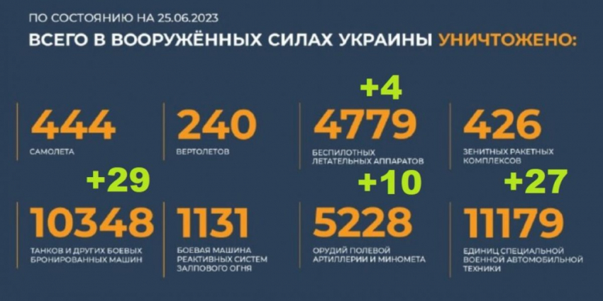 - Актуальный брифинг Министерства обороны РФ о ходе проведения специальной военной операции на территории Украины по состоянию на 25 июня 2023 года. Сводка боевых действий на Украине.