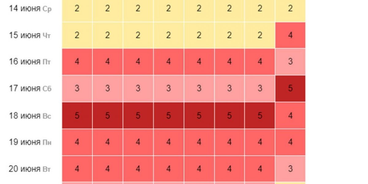 В данном расписании указаны магнитные бури в формате от 1 до 6. Значение баллов: 1 — нет магнитных бурь, 2 — слабая категория, 3 — умеренная, 4 — средняя, 5 — сильная, 6 — очень сильная.