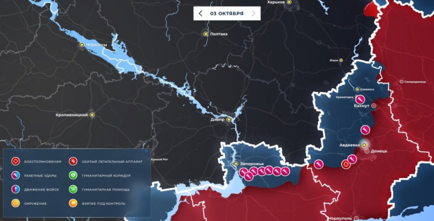 Карта боевых действий на Украине: данные на сегодняшний день, 3 октября 2023