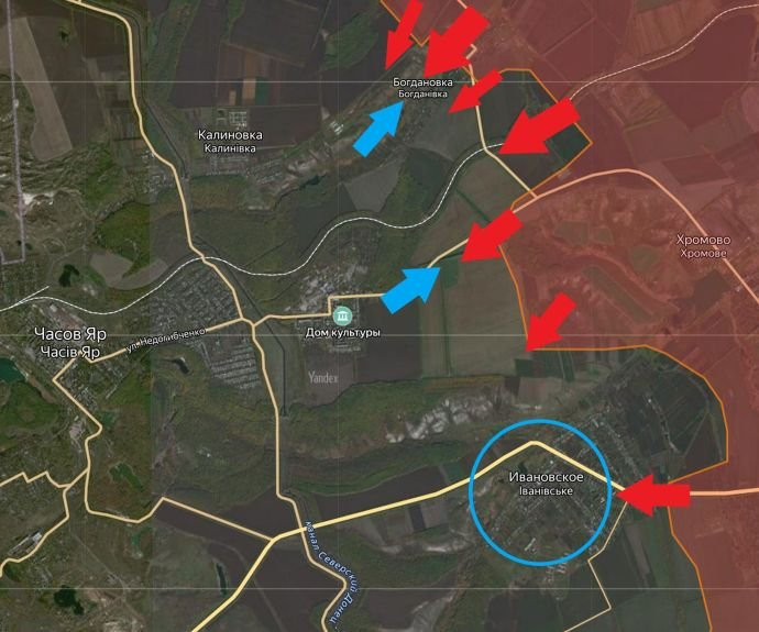На Артёмовском направлении ВС РФ атаковали у Андреевки. При поддержке артиллерии вели наступательные действия у Ивановского и Богдановки. ЛБС существенно не изменилась. Под обстрелами ВСУ в Клещеевке, Калиновке и Раздоловке. ВС РФ - в Артёмовске.