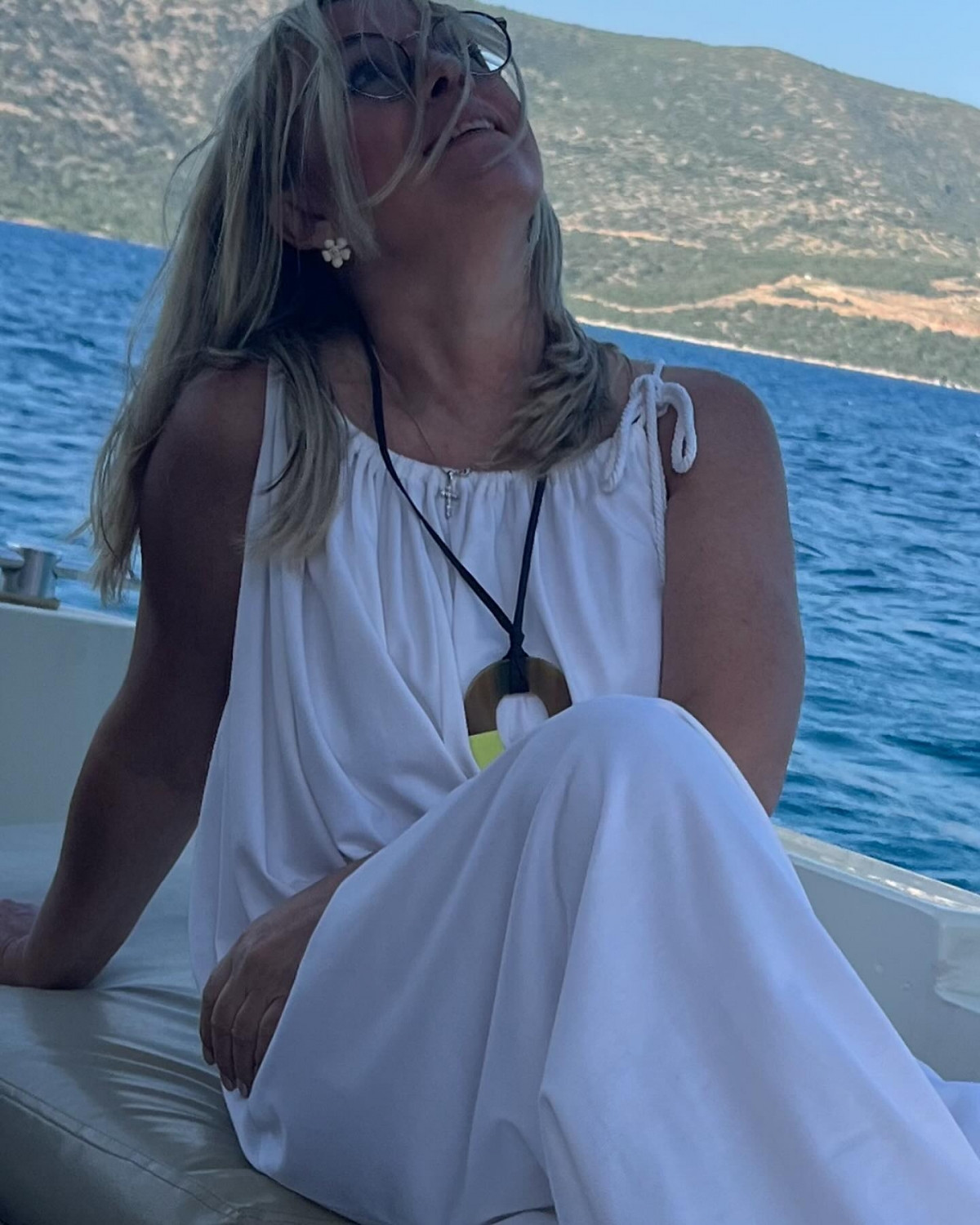На снимках Ирина предстала в белом платье, с распущенными волосами, она поднимает голову, наслаждаясь морским воздухом. Ее дочь Алиса позирует за столом.