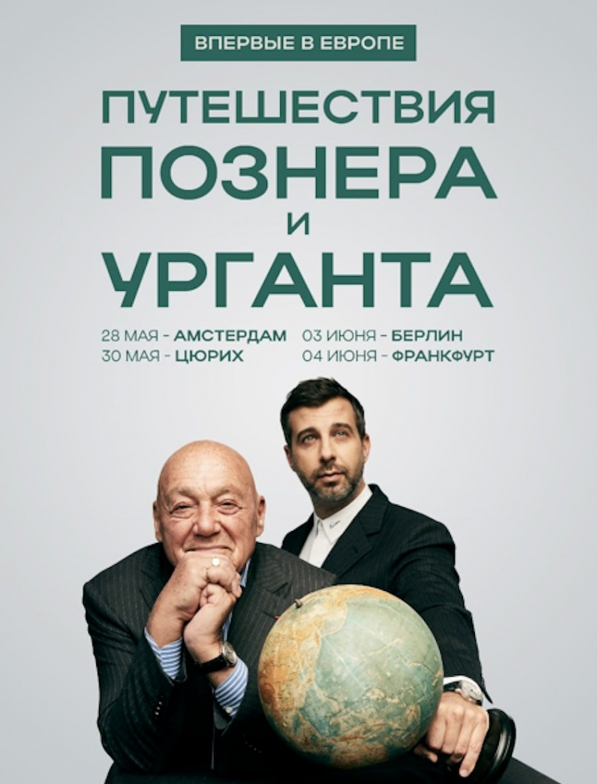 Иван Ургант и Владимир Познер, два года не появлявшиеся в эфире, решили уехать из РФ, чтобы отправиться в гастрольный тур по городам Европы. По информации «7дней», их программа «Путешествия Познера и Урганта» будет представлена в городах Нидерландов, Швейцарии, Германии. Стоимость билетов варьируется от 49 до 249 евро.