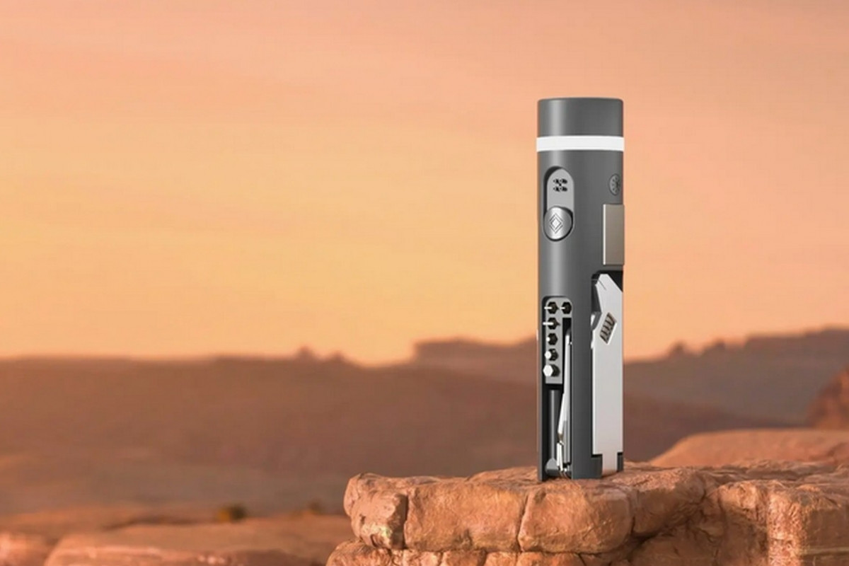 Основная его особенность — это яркость. Фонарик имеет три уровня яркости: 17,5, 672, 1000 люмен. Работает он на литий-ионном аккумуляторе 3500 мАч, обеспечивает до 4 часов работы на максимальной яркости после восьмичасовой зарядки. Регулирует луч света от рассеянного до сфокусированного, освещает объекты до 300 метров. Светящееся кольцо обеспечивает также отличную видимость в темноте.Фонарик оснащен крючком для подвешивания, а также мощным магнитом N50 на дне, кусачками, гаечным ключом, ножом, пилой, зажигалкой, стеклобоем, внешним аккумулятором с USB-C и USB-A, отверткой с насадками, резаком для пластиковых бутылок. Все эти инструменты компактно складываются в корпус.
