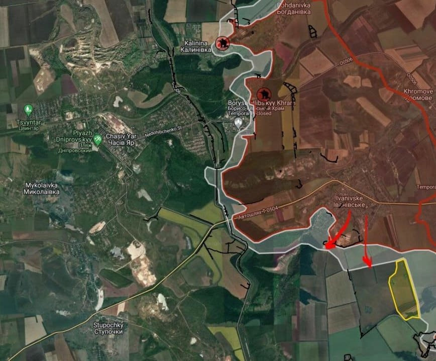На Часовоярском направлении продолжаются бои за высоты в районе Клещеевки, аналогичная ситуация складывается юго-западнее Красного. ВС РФ, при поддержке авиации и артиллерии ведут штурм восточных окраин Часов Яра. Также, продолжаются бои западнее Богдановки.