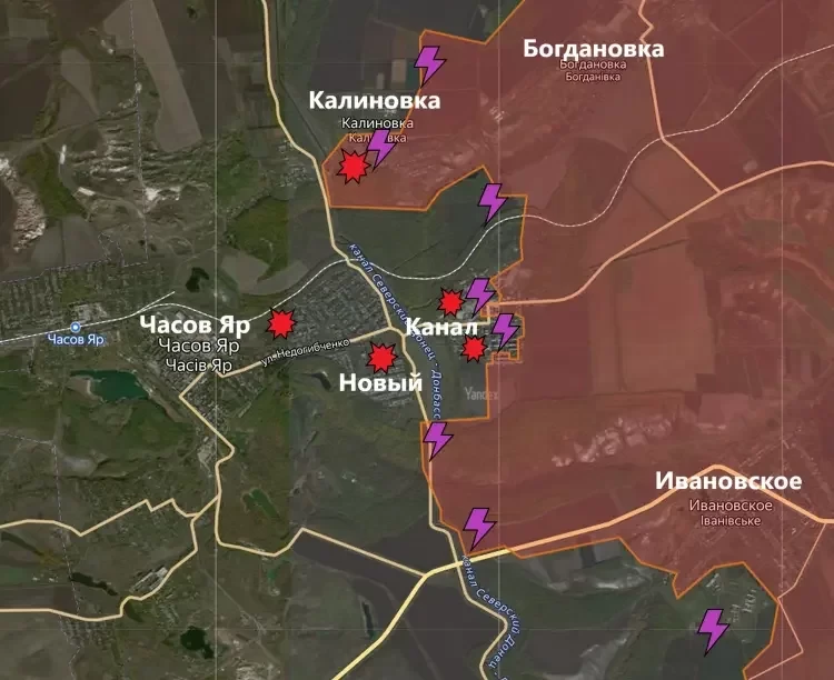 На Константиновском направлении В Калиновке идут встречные бои. Выбить противника из центральной части села, где он недавно вернул себе позиции, пока что не удается. Как не удаётся выбить противника и из лесного массива между Богдановкой и северной частью микрорайона Канал, информирует PulsePen. самом Часов Яре идут бои на восточных окраинах - в микрорайоне Канал. Враг оказывает ожесточенное сопротивление и сдавать позиции не намерен. Удерживающим оборону доставляют боеприпасы и провизию на бронированных автомобилях через импровизированный мост (насыпь в пересохшем канале Северский Донец - Донбасс). Враг буквально вгрызся в западные окраины микрорайона Канал.