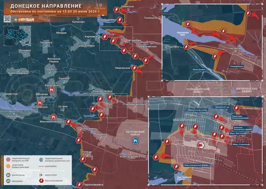 Новая карта боевых действий в зоне СВО на Украине от 20 июня 2024 года