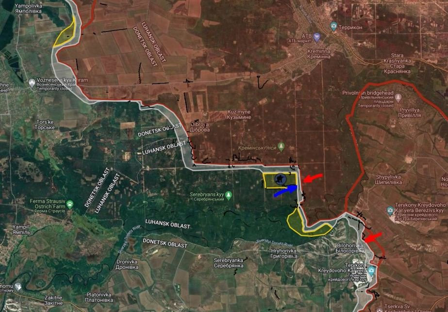 На Купянско-Лиманском направлении южнее Ивановки российские войска продвинулись западнее к Степовой Новоселовке. Восточнее Стельмаховки ВС РФ удалось закрепиться вдоль южной лесополосы балки на глубину до 1.65 км.