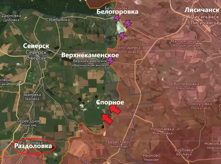 Успехи ВС РФ фиксируются в районе Спорного. Некоторые источники сообщают, что населённый пункт уже перешёл под контроль ВС РФ. Однако кадров, подтверждающих это, пока что нет.