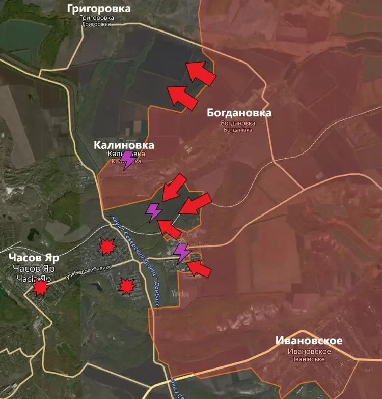 В микрорайоне Канал, что на восточных окраинах Часов Яра, продолжаются ожесточённое бои. По последним данным, враг остаётся лишь в районе высоток на юго-западе микрорайона. Помимо этого, подразделения Армии России серьёзно продвинулись в лесном массиве между Калиновкой и микрорайоном Канал.