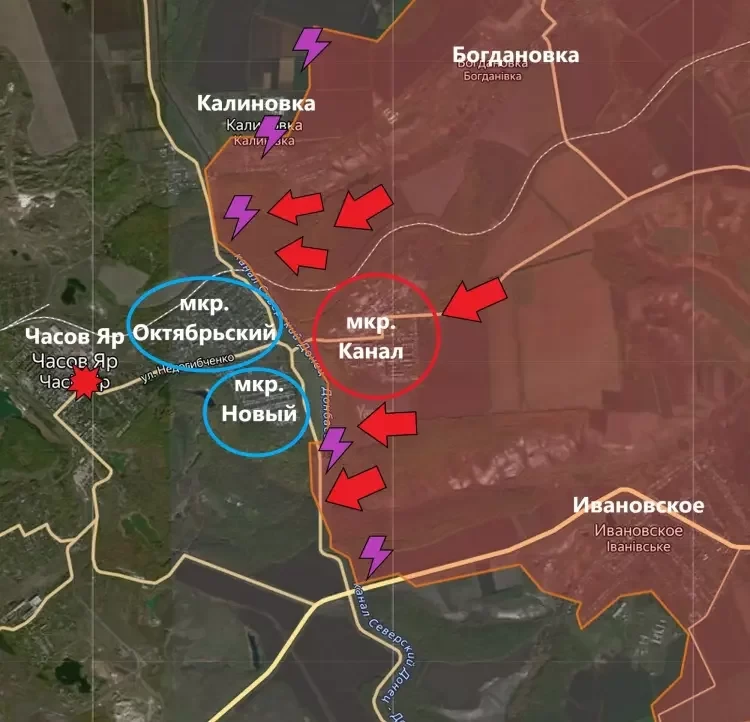 На Константиновском направлении в Часов Яре ситуация прежняя. Наши бойцы пытаются выдавить противника с его позиций между Калиновкой и микрорайоном Канал. Штурм самого Часов Яра пока что на паузе, пишет PulsePen.