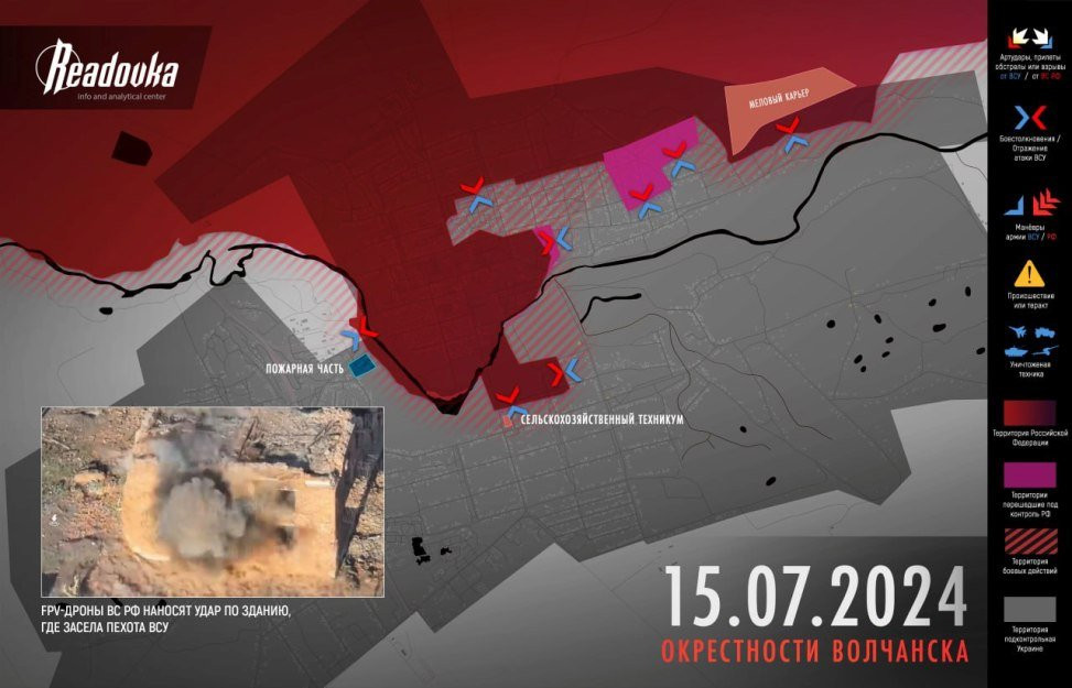 На северном берегу в Волчанске сводный штурмовой отряд ВСУ безуспешно попытался выбить наших бойцов из района продуктового рынка и прорваться дальше к многоэтажкам. На такую отчаянную атаку противник пошел, чтобы создать угрозу русским плацдармам в западной и южной части города за рекой Волчья и помешать продвижению ВС РФ.