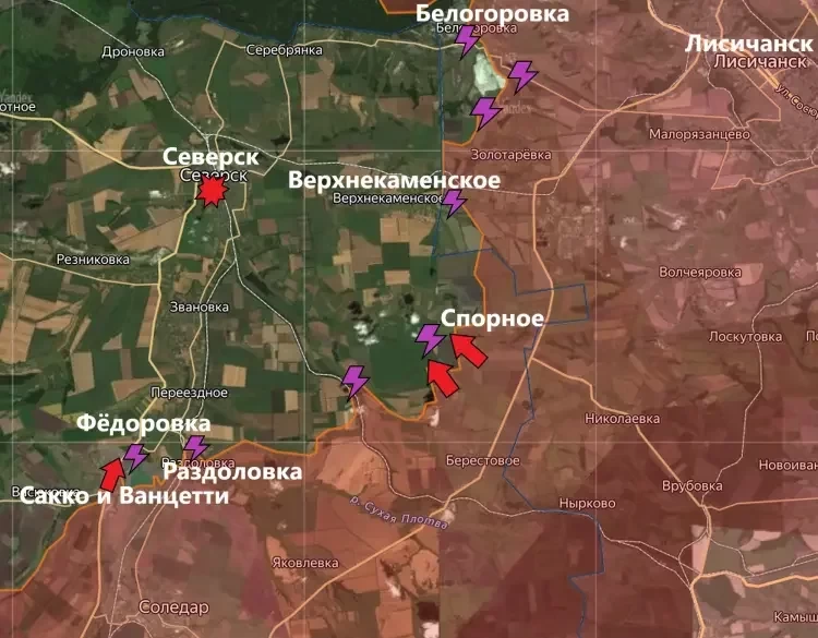 Бои локального характера идут в районе Верхнекаменского, на восточных подступах к селу. Продвижения здесь также нет довольно долго. Некоторые военные каналы ранее утверждали, что взятие этого населённого пункта позволит продвинуться на северо-запад, чтобы окружить Белогоровку и отвал мелового карьера (террикон). Однако, пока о взятии Верхнекаменского речи не идёт.