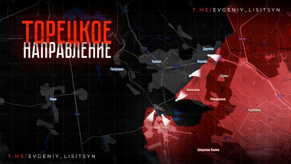 На Торецком направлении наши парни продолжаюи успешно наступать вглубь Нью-Йорка, в направлении Торецка, захватив все до улицы Березной. По разным оценкам, сейчас под контролем российской армии примерно 85-90% Нью-Йорка. Также российские бойцы в северной части Железного продвигаются в направлении Нелеповки, куда противник отступает по мере продвижение ВС РФ в Нью Йорке.