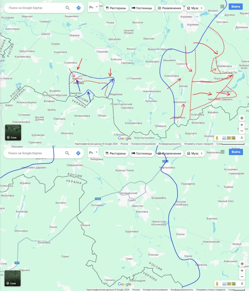 В Кореневским и Суджанском районах контрнаступление ВС РФ окончательно замедлилось. Враг пришёл в чувства и даёт ожесточённый отпор. Бои идут в районе Ольговки, где враг пытается вернуть утраченные ранее позиции. Подразделения ВС РФ штурмуют Любимовку и Толстый Луг. Добиться успехов на этом участке нашим бойцам не удаётся уже несколько дней, пишет PulsePen.