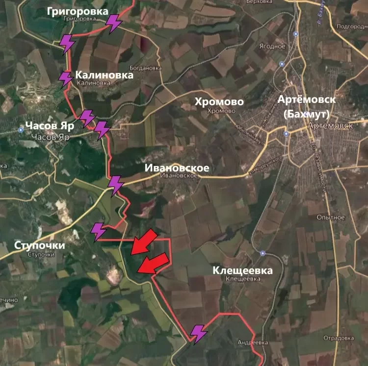 На остальных участках линия ЛБС не изменилась. Идут бои в районе Григоровки, на востоке микрорайона Октябрьский в Часов Яре, западнее Калиновки и на подступах к Ступочкам.