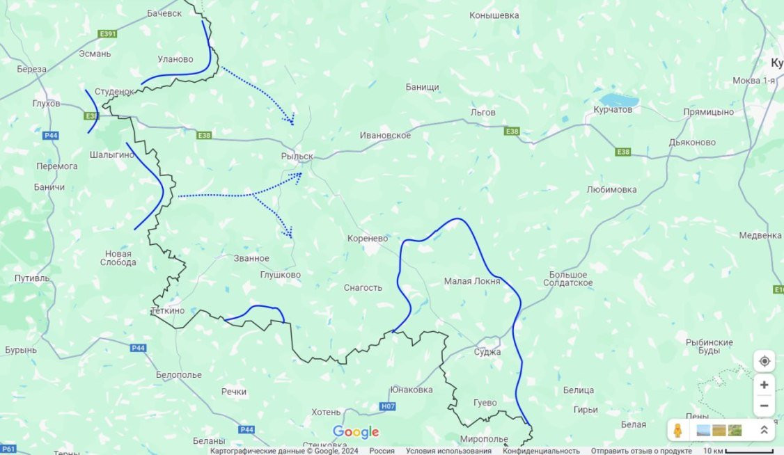 Что говорит о возможном замысле противника вернуться к попытке нанесения нам еще одного удара в Курской области с прицелом на Рыльск. Похоже, что именно здесь противник может попробовать попытать свое счастье еще раз (и заодно решить свои проблемы на участке южнее Коренево).