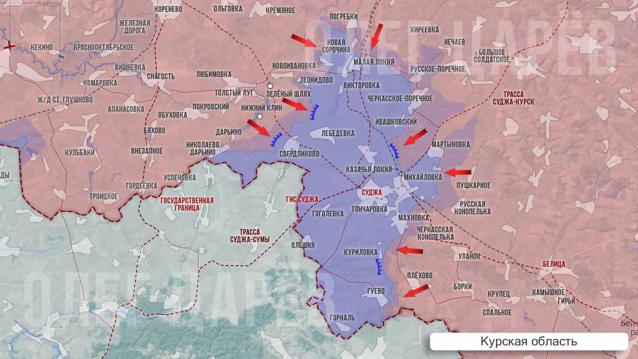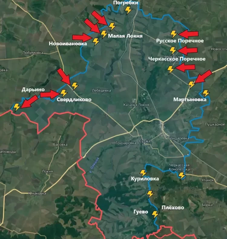 В свою очередь PulsePen информирует о том, что в Курской области без существенных изменений за последние сутки. На Курском направлении российские бойцы подняли знамя 155-й бригады морской пехоты на востоке Новоивановки, подтвердив ее полное освобождение. О том, что населённый пункт освобождён, было известно и ранее, но теперь - с кадрами объективного контроля. Судьба Русского Поречного и Черкасского Поречного до сих пор неизвестна. Ранее сообщалось, что враг отправил туда дополнительные резервы для удержания позиций, чтобы защитить восточный фланг своих сил в Малой Локне.